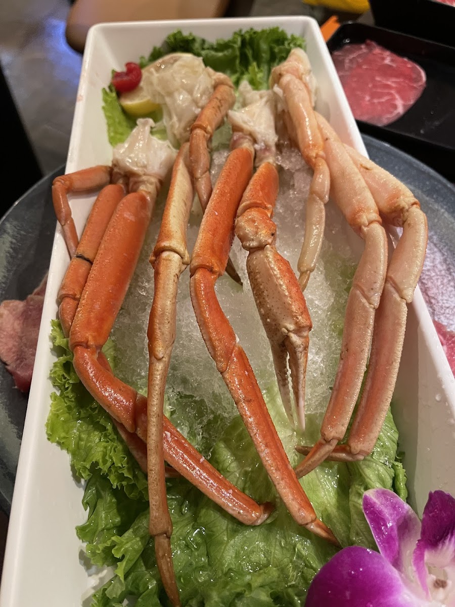 Buffet style hot pot and best hot pot place i have been in town. Large selection of seafood, vegetables and good quality beef/lamb. Their broth is great, not too oily. Sauce station is excellent with variety of chili oil, sesame, peanut sauce, etc.. They also offered free soda, Bubba tea, etc..
